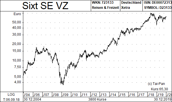 Unser längstes Investment überhaupt ist die Sixt-Aktie. Seit mehr als 15 Jahren halten wir die Anteile des Autovermieters bereits im Musterdepot – und das mit durchschlagendem Erfolg. Bei einem kleinem Teilverkauf im November 2019, mit dem wir die starke Übergewichtung der Aktie etwas abgebaut haben, wurde eine Rendite von 1.076 % realisiert. Das zeigt exemplarisch, wie sehr sich langfristiges Investieren lohnen kann, so lange die Value-Kriterien erfüllt sind. Und das war und ist bei Sixt der Fall. Nicht nur, dass der Markt der Autovermietung stetig wächst, darüber hinaus bauen die Pullacher ihr Filialnetz rund um den Globus sukzessive weiter aus. Und obwohl die Konkurrenz hart ist, wächst Sixt als einziges großes Familienunternehmen der Branche dank überdurchschnittlicher Eigenkapitalquote und hohem Spürsinn für Marktentwicklungen deutlich schneller und profitabler als die Wettbewerber. So hat Sixt von 2005 bis 2019 seinen operativen Umsatz fast verdreifacht und seinen Nettogewinn sogar nahezu verfünffacht, was den wesentlichen Treibsatz für die fulminante Kursentwicklung darstellte.